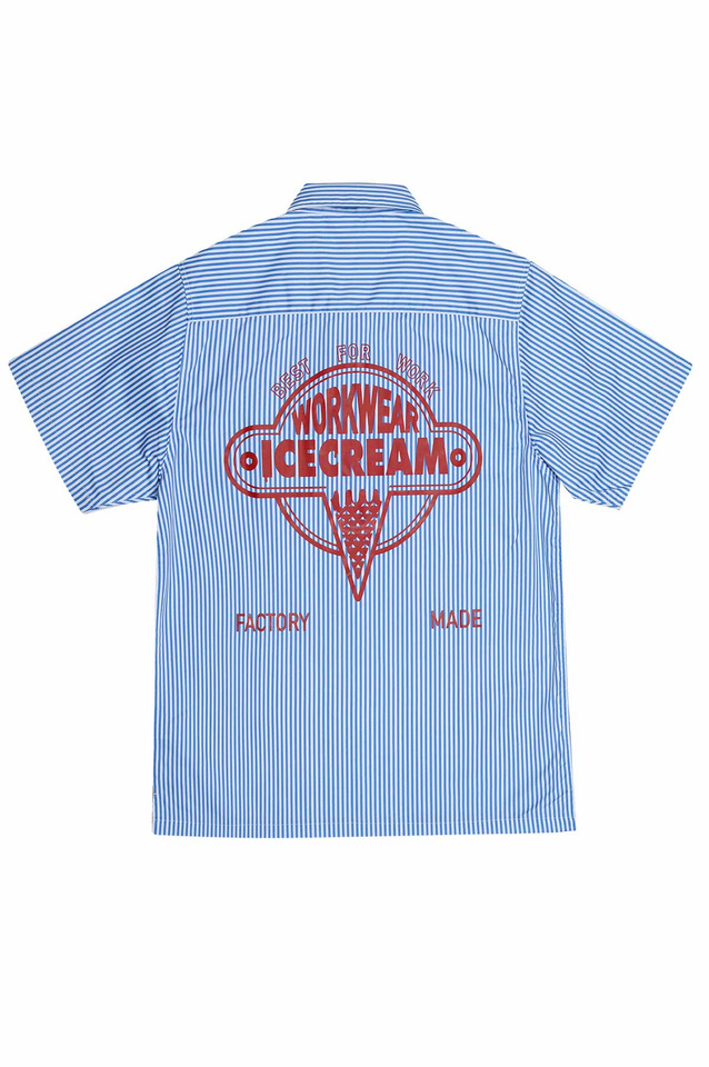 ICECREAM Quarter Zip Striped Work Shirt Blue/White